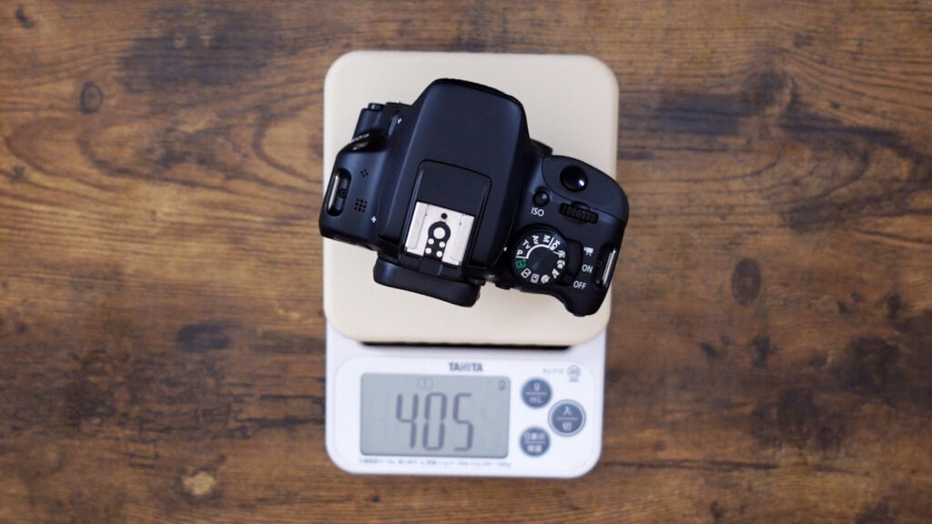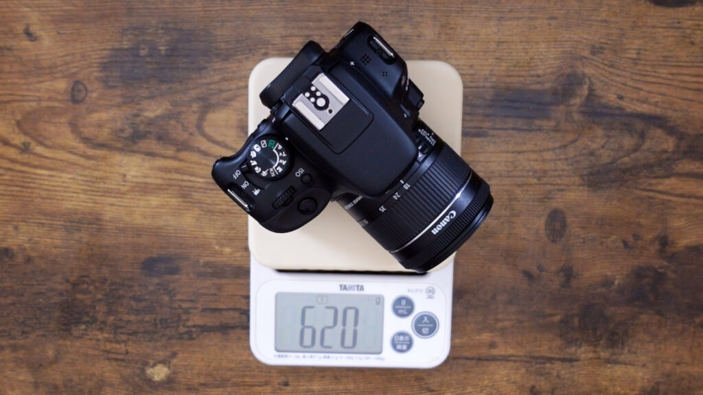 ボディと標準ズームレンズ18-55mmのセットアップで620g。